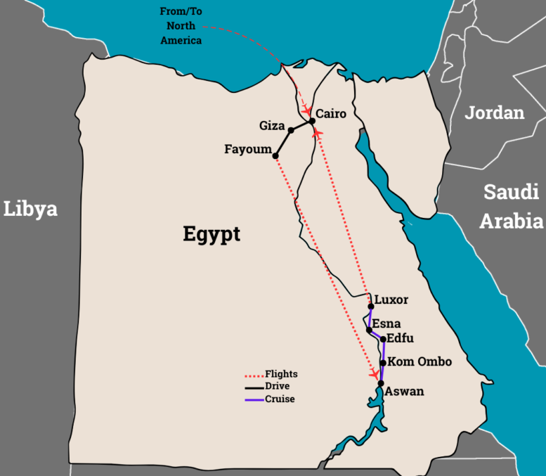 • Domestic flight from Cairo to Aswan and Luxor to Cairo